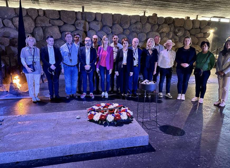 Après avoir déjeuné dans le quartier de la Mamilla, notre délégation s’est rendue au Mémorial de la Shoah de Yad Vashem pour une visite guidée et une cérémonie dans la crypte du souvenir. Moment bouleversant pour l’ensemble des députés face à la monstruosité du nazisme et à l’horreur vécue dans les camps de concentration. Les députés Pierre-Henri Dumont et Annie Genevard, secrétaire générale du parti les Républicains et ancienne Vice-présidente de l’Assemblée nationale, ont ravivé la flamme du souvenir et déposé une gerbe de fleurs au nom du groupe les Républicains et de l’Assemblée nationale.