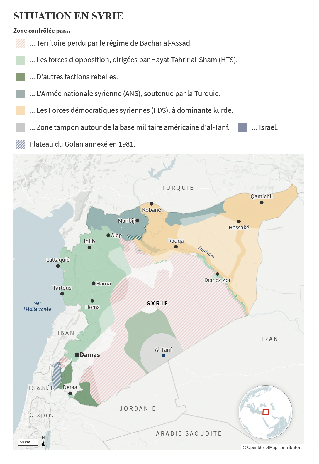 Maître du nouveau jeu politique, l’ancien djihadiste, qui a emprisonné des opposants dans son fief d’Idlib, est toutefois loin d’avoir toutes les cartes en main. Son contrôle du pays reste limité aux grandes villes – Alep, Hama, Homs et Damas. Le Nord-Est kurde, où ces derniers affrontent des groupes pro-turcs, lui échappe.