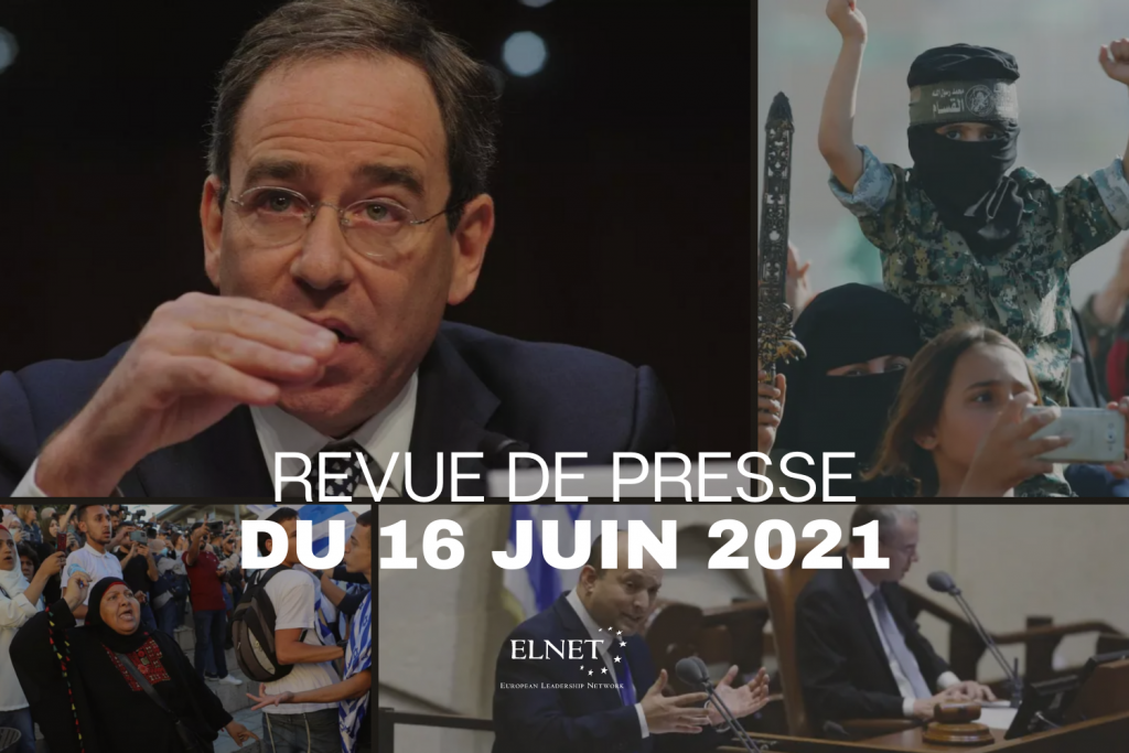 Revue de presse du 16 Juin 2021 ELNET France il y a 4 ans PRESSE FRANÇAISE Premiers échanges de tirs Israël-Hamas depuis la trêve à Gaza (Le Figaro) Le gouvernement israélien face à un premier test (Le Figaro) Joe Biden nomme le démocrate Thomas Nides comme ambassadeur américain en Israël (France 24) De la « République » à l’« État » islamique d’Iran ? (Le Point) L’Iran s’offre deux nouveaux navires de guerre (Capital) PRESSE INTERNATIONALE 40 years after Israeli strike, Iraq looks to build nuclear reactors (Jerusalem Post) Israel strikes Hamas sites in Gaza after incendiary balloon attacks (Ynet) Gaza war increased Hamas’s popularity, poll shows (Jerusalem Post) Netanyahu defeat brings relief, if no policy shift, for Biden (Ynet) The Bennett family’s grace trumps its rivals’ gracelessness (Jerusalem Post)