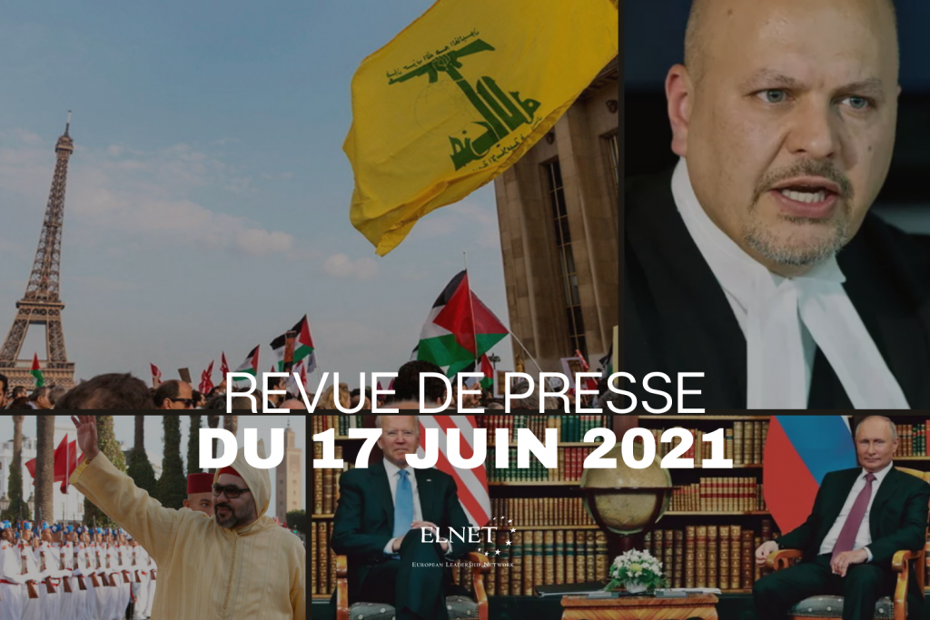 Revue de presse du 17 Juin 2021 ELNET France il y a 4 ans PRESSE FRANÇAISE Karim Khan, un spécialiste des droits humains, devient procureur général de la CPI (Le Figaro) Le Hezbollah tisse sa toile en France (Le Point) À Genève, Poutine et Biden se disent leurs quatre vérités (Le Figaro) Le roi du Maroc félicite Bennett; le Hamas invité par le Premier ministre (Times of Israel) PRESSE INTERNATIONALE Palestinians warn PA against resuming peace talks with Israel (Jerusalem Post) Will every Israeli airstrike now be front page news? – analysis (Jerusalem Post) Israel’s Gaza response was too little, too late (Ynet) Iran bolsters nuclear enrichment, despite election (Jerusalem Post)
