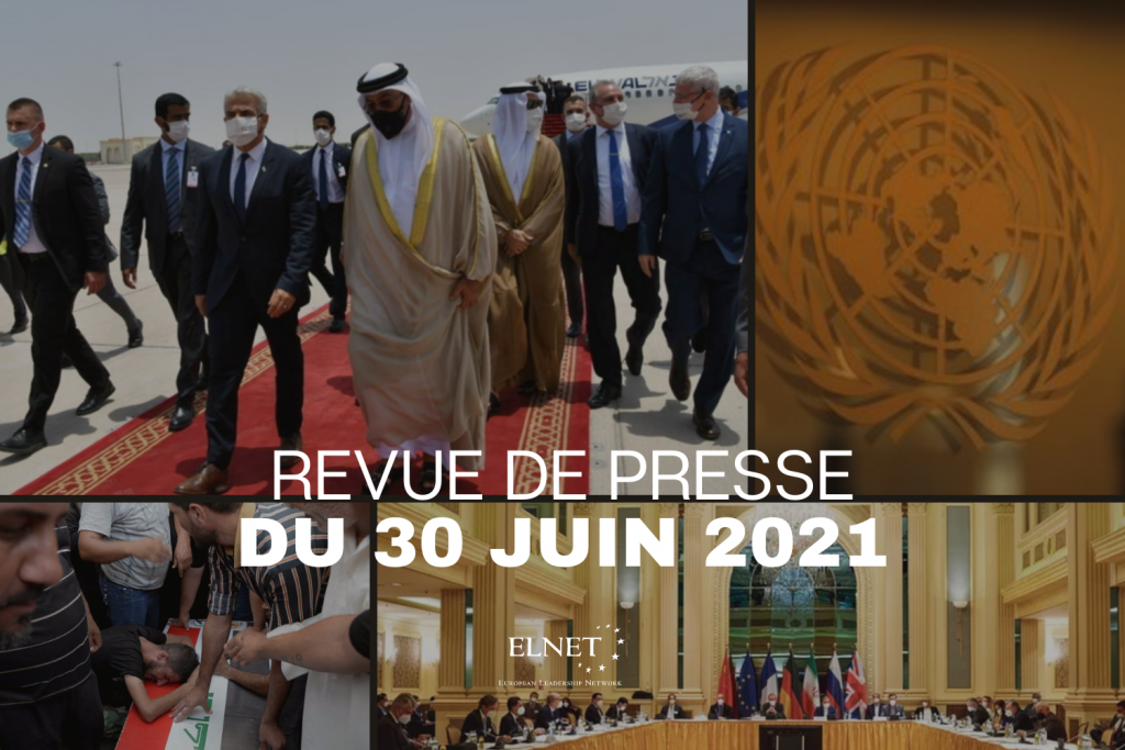 Revue de presse du 30 Juin 2021 ELNET France il y a 4 ans PRESSE FRANÇAISE Frappes américaines contre des milices pro-Iran en Irak et en Syrie, « un message fort » selon Blinken (Le Monde) Nucléaire iranien: la fenêtre se referme (Le Figaro) Un expert de l’Onu soutient une enquête sur les exécutions de 1988 en Iran et sur le rôle de Raïsi (La Tribune) Inauguration discrète de la première ambassade d’Israël dans le Golfe (La Presse) Israël : Cette tenue de camouflage high-tech permet de rendre les soldats presque invisibles (20 Mn) PRESSE INTERNATIONALE Ilhan Omar defends comments comparing Israel, US to Hamas, Taliban (Jerusalem Post) Pro-Iranian forces claim they shelled Americans in Syria (Jerusalem Post) ‘Mossad has penetrated the regime’ says former Iranian intelligence minister (Israel Hayom) Lapid opens landmark UAE embassy: ‘Peace is victory of all that is good’ (Ynet)