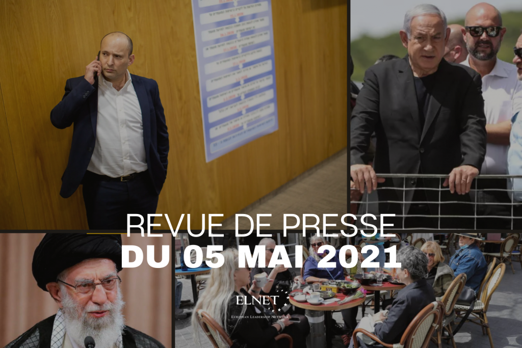 Revue de presse du 5 Mai 2021 ELNET France il y a 4 ans PRESSE FRANÇAISE Syrie: raids aériens imputés à Israël dans la région de Lattaquié En Iran, les quatre vérités de l’ayatollah Khamenei Affaire Zarif : ce qu’elle dit du pouvoir iranien Israël: Netanyahou échoue à former un gouvernement Covid-19 : comment Israël a retrouvé une vie « normale » PRESSE INTERNATIONALE Biden to Abu Dhabi crown prince: Normalization with Israel is important Rivlin to meet Lapid, Bennett as he begins talks on new mandate to form government Yamina MK to quit party in protest against Bennett-Lapid unity Shadowy Hamas terror chief issues warning to Israel over Jerusalem Report: Saudi Arabia to reopen Damascus embassy, seeking thaw with Syria