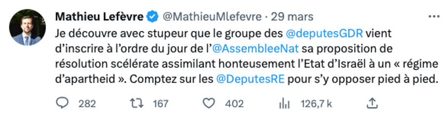 - Le groupe NUPES veut qualifier Israël de régime d’apartheid