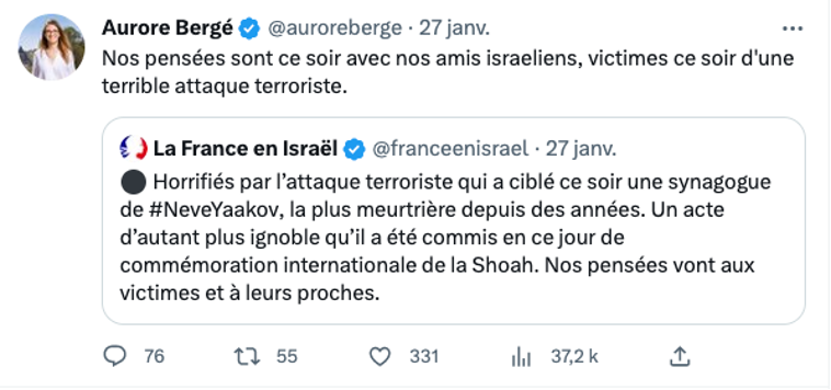 C’est ce 27 janvier, jour symbolique, qu’un djihadiste a choisi pour abattre à Jérusalem, devant une synagogue, sept civils, dont une réfugiée ukrainienne – j’ai une pensée pour eux et leurs familles.