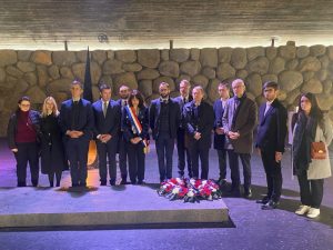 Le mercredi 4 janvier, les députés se sont rendus au Mémorial de l’Holocauste de Yad Vashem pour une visite guidée et une cérémonie dans la crypte du souvenir. Moment bouleversant, suspendu dans le temps pour l’ensemble des parlementaires qui visitaient le Mémorial pour la première fois. Les députés Caroline Yadan et Karl Olive ont ravivé la flamme et déposé une gerbe de fleurs au nom du groupe Renaissance et de l’Assemblée nationale.