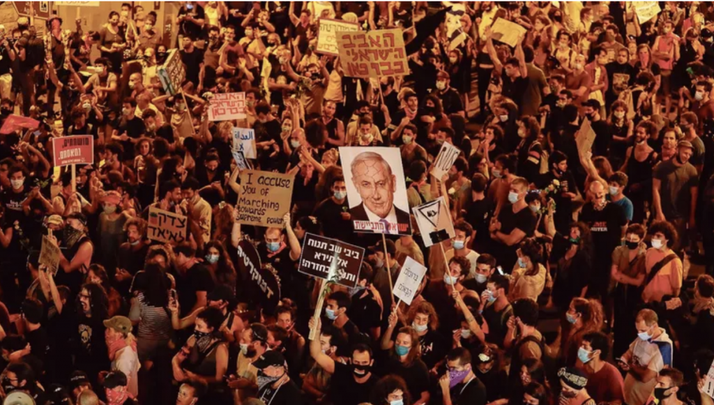 De plus en plus d’Israéliens reprochent au premier ministre sa mauvaise gestion de l’épidémie de Covid, entre autres choses.